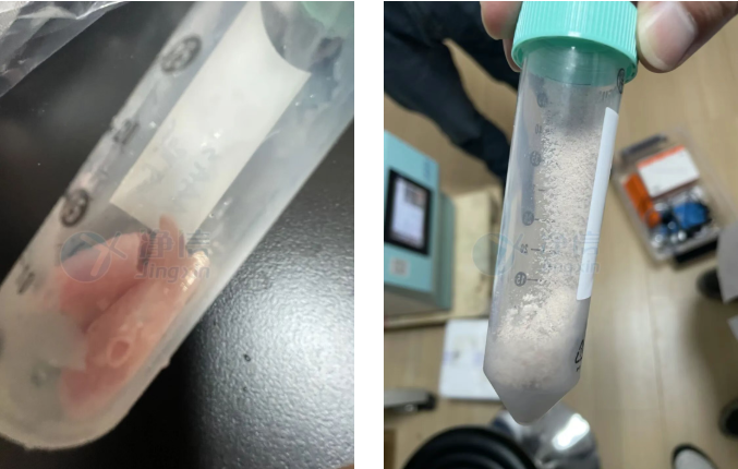 上图为1分钟的研磨效果,已经完全研磨完成。效果非常好,雷竞技ios一次可以研磨2个样品,大大提高了之前用手磨的效率和效果,所以人工研磨特别不方便,经过多次了解和对比所以老师选用净信雷竞技ios代替人工处理。效率高,效果好。解决了老师的研磨问题。