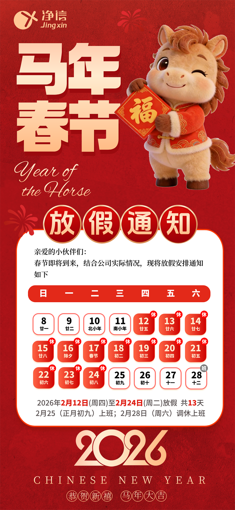 马年春节放假通知